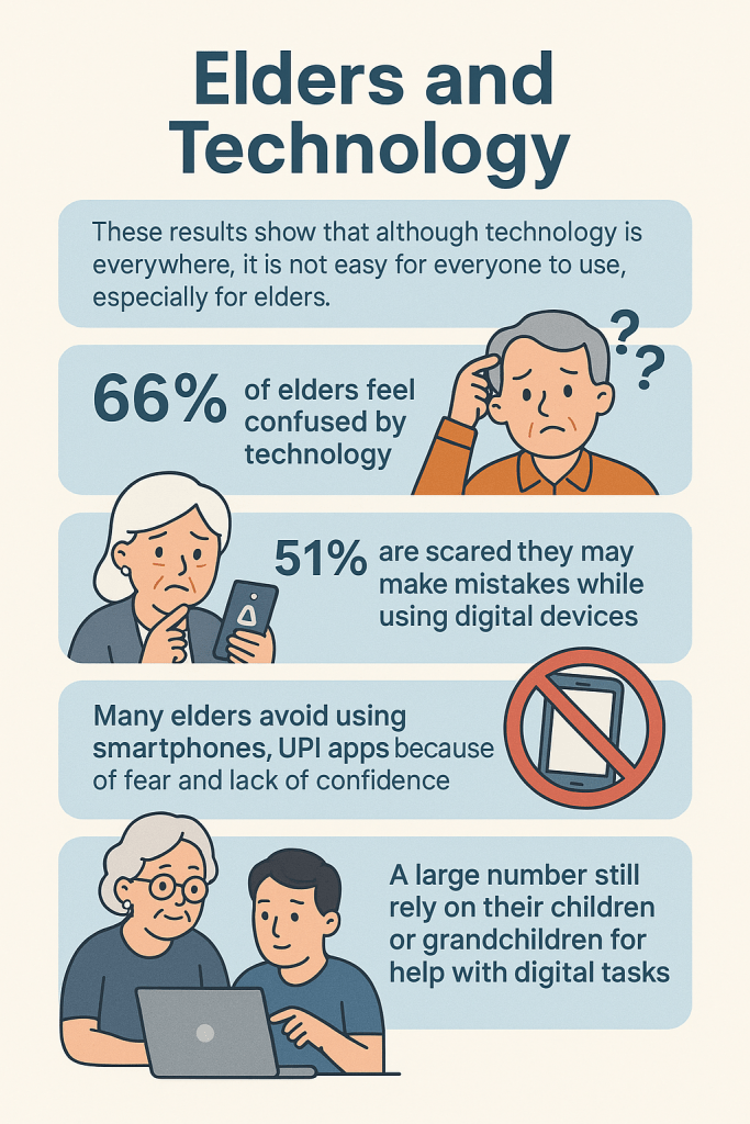 A recent study by HelpAge India, a well-known organization dedicated to elderly welfare, reveals that over 66% of senior citizens find digital technology confusing—that’s two out of every three elders.